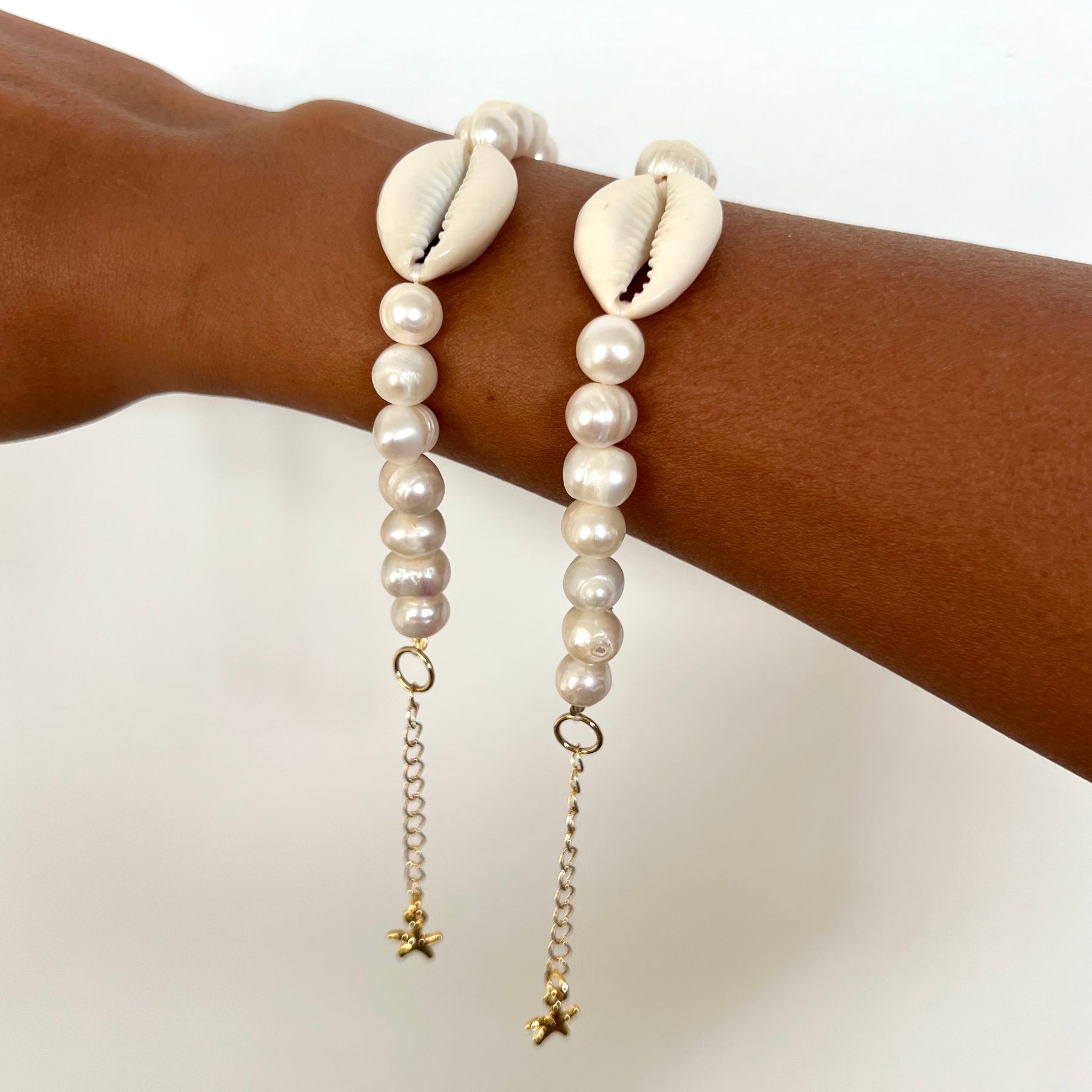 צמיד פנינים מתורבתות באיכות גבוהה,עם קונכייה טבעית במרכז.