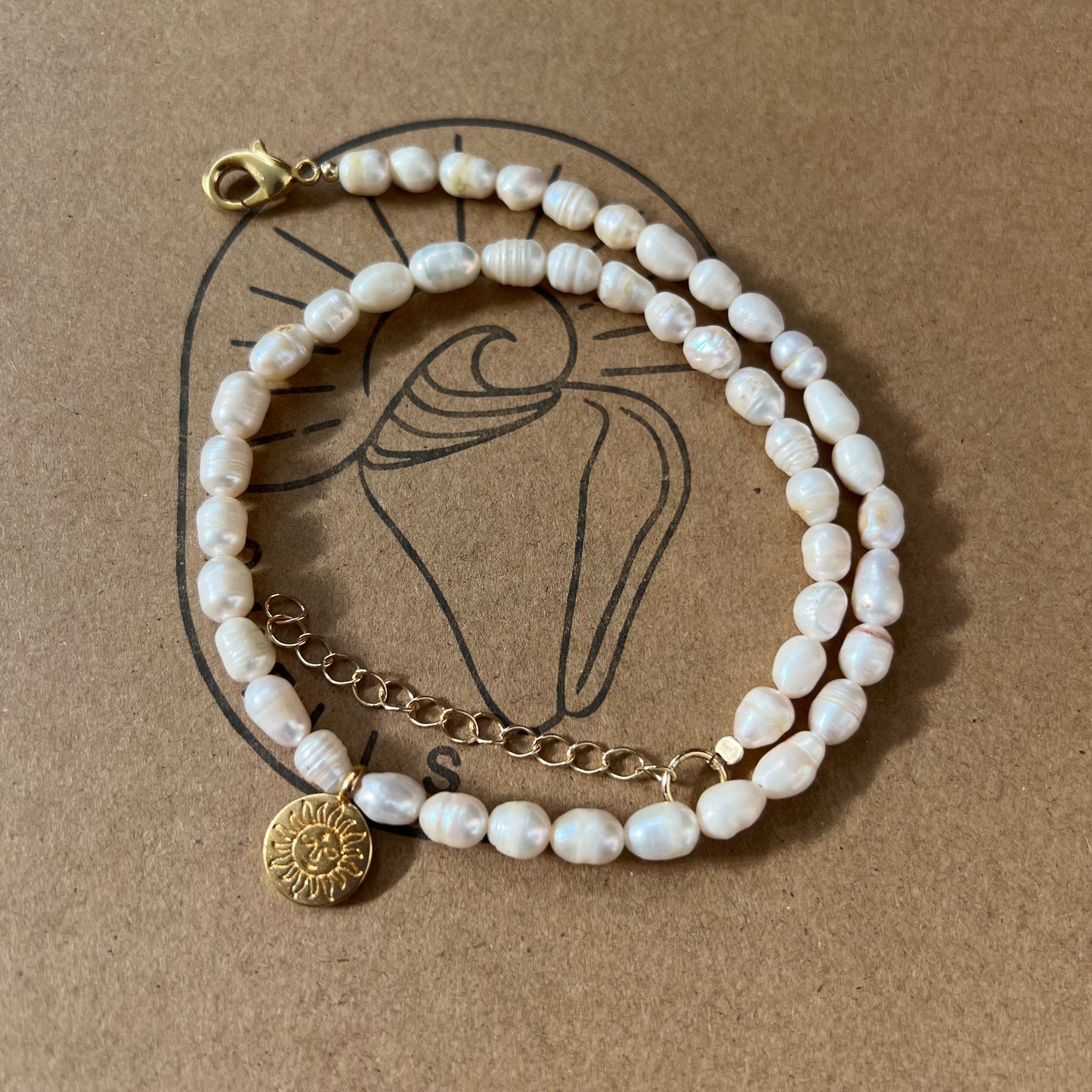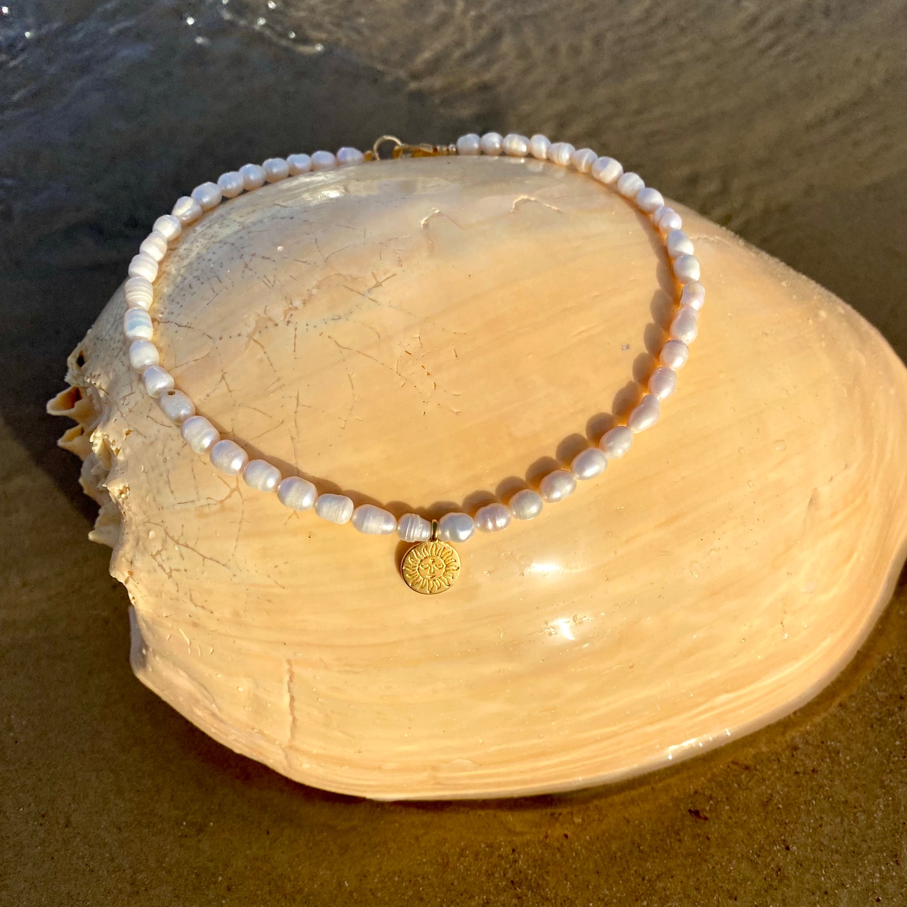 שרשרת פנינים ותליון שמש ציפוי זהב